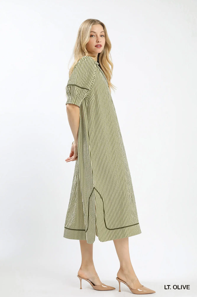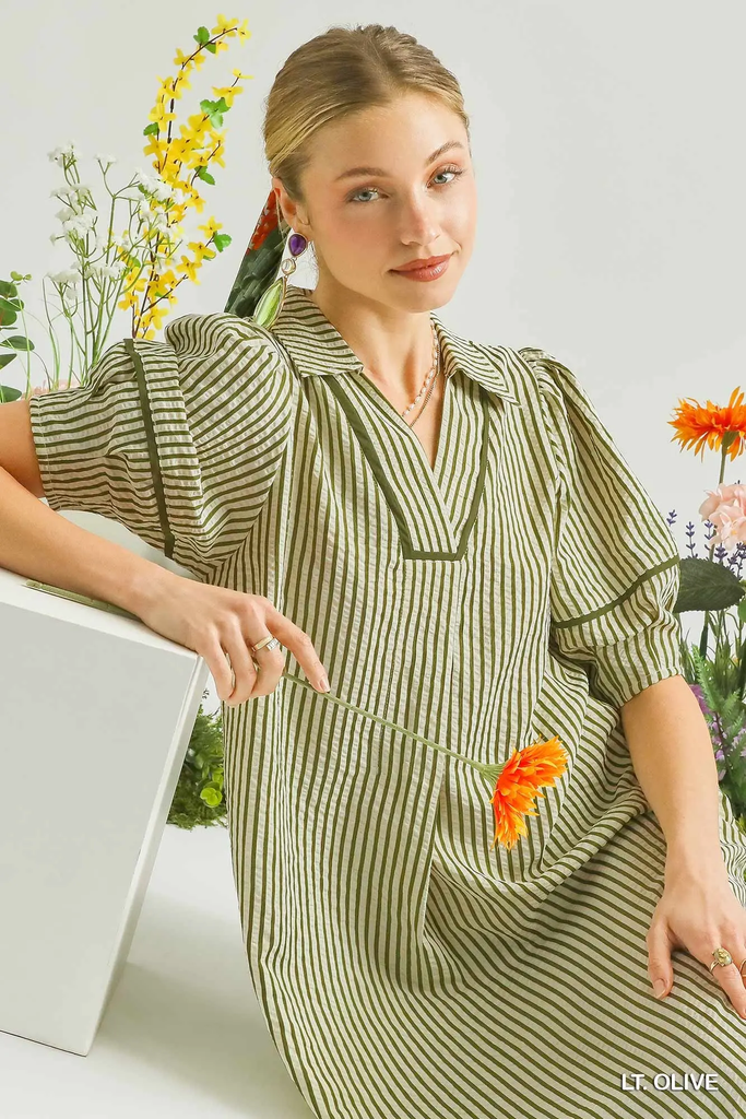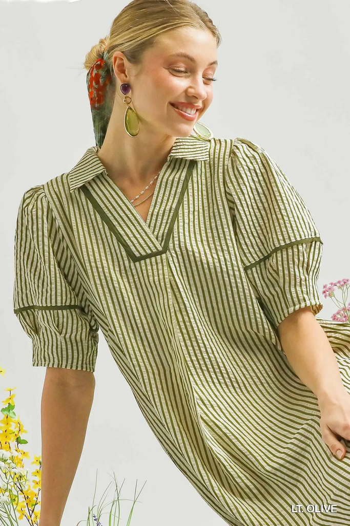 Striped Midi Dress with Puff Sleeves